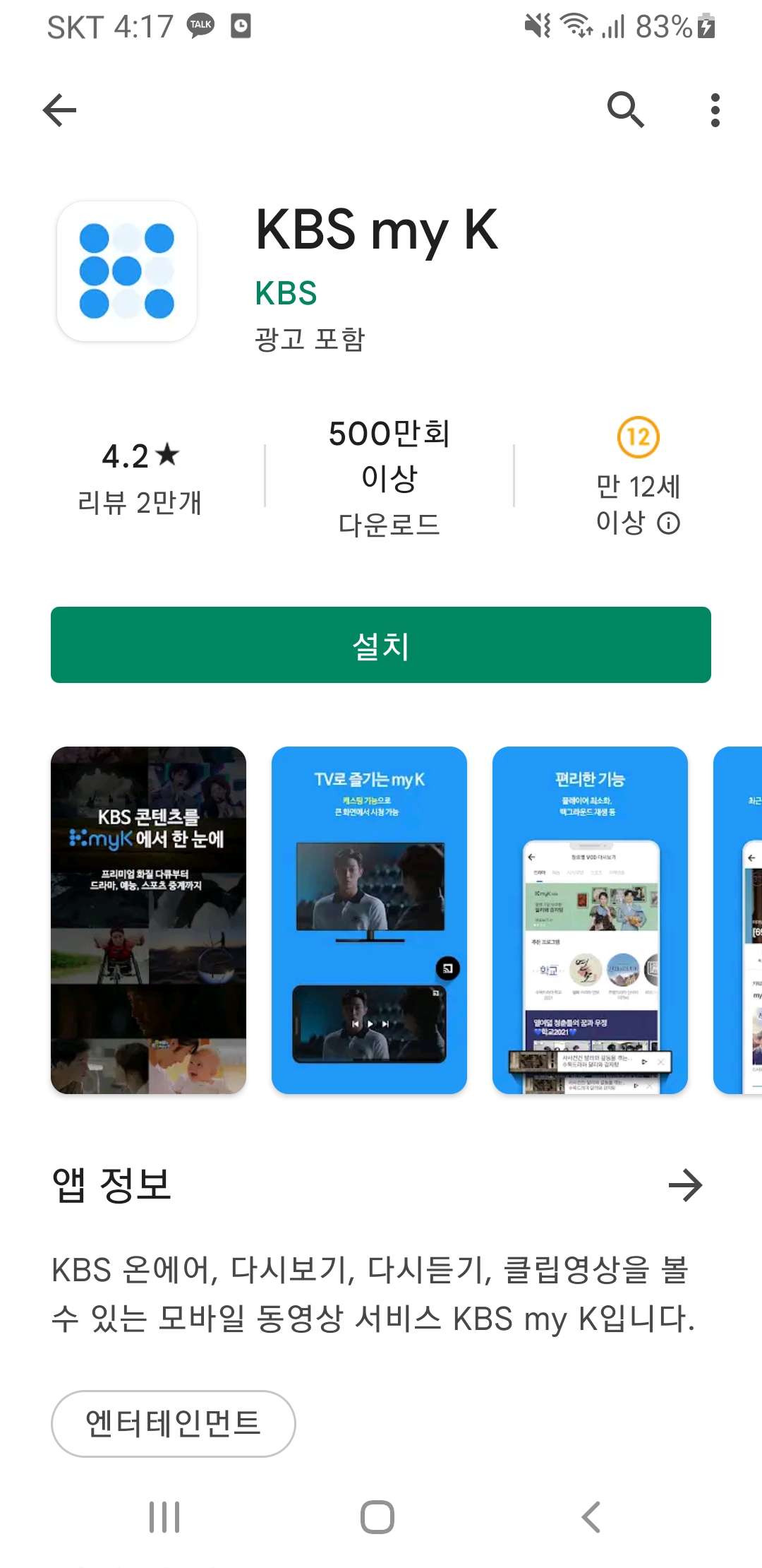 KBS 방송을 모바일로 보시려면 어플다운로드를 통해 편하게 보는 방법이 있는데 KBS my K 앱을 다운로드 후에 이용하시면 됩니다. KBS 온에어, 다시보기, 다시듣기, 클립영상등을 볼 수 있는 모바일 동영상 서비스로 많은 사람들이 이용하고 있습니다.